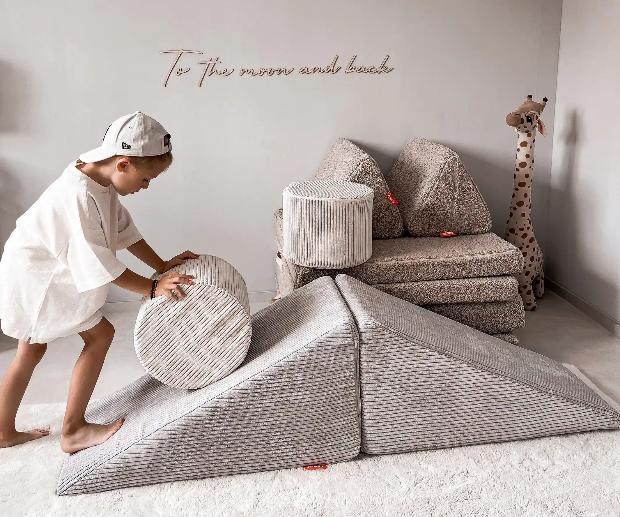 Der Funzy Pouf ist Hocker, Spielbaustein und bequeme Fußablage in einem – leicht, vielseitig und einfach funzy.