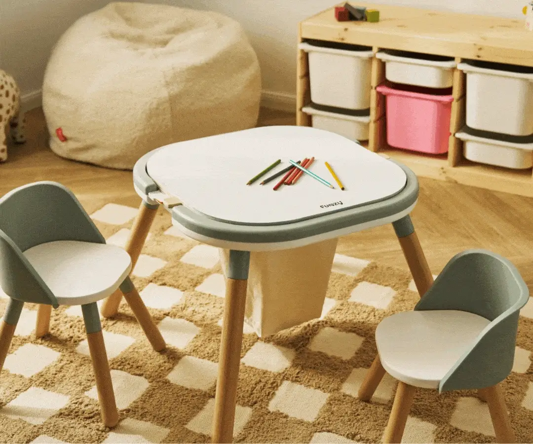 8-in-1 Montessori Spieltisch - ein durchdachter Lern- und Spielraum, der Struktur und Kreativität vereint.